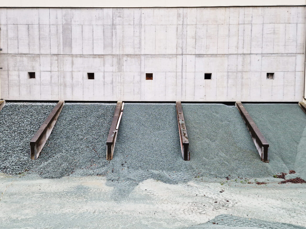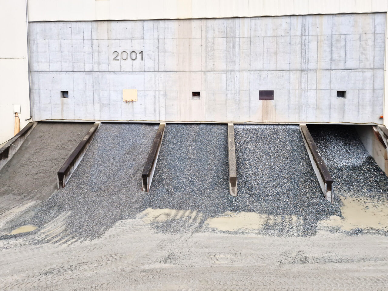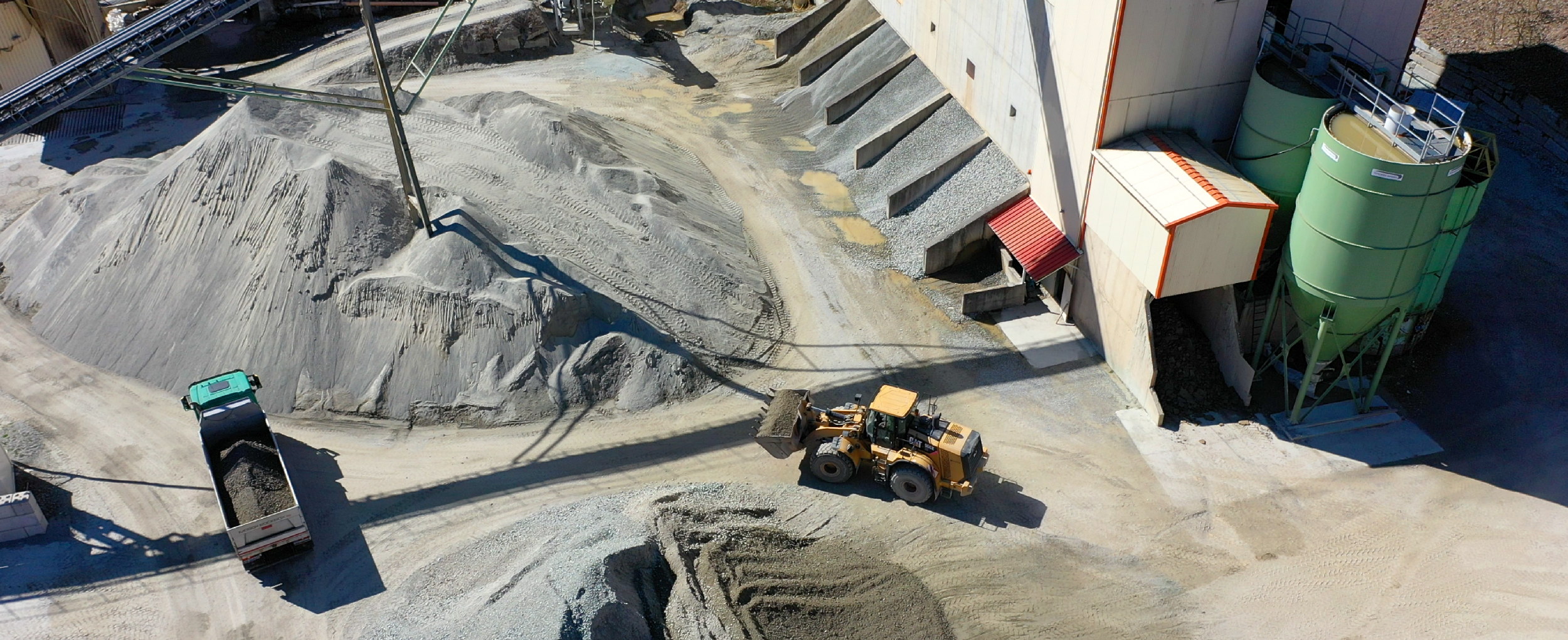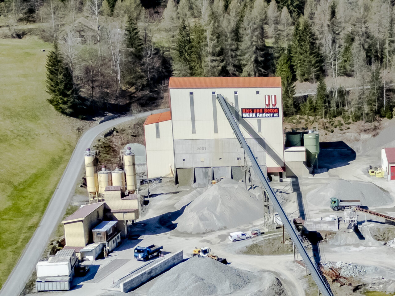 Das gewonnene Rohmaterial aus der nahegelegenen Kiesgrube besteht aus einem natürlichen Gemisch aus Kies, Sand und Feinanteilen. Nach dem Abbau wird das Material gewaschen und mittels Siebmaschinen in die normierten Korngrössen fraktioniert.Grössere Steine werden im Brecher mechanisch zerkleinert und anschliessend ebenfalls auf die geforderten Korngrössen sortiert. So entsteht eine breite Palette an qualitätsgeprüften Gesteinskörnungen für den Einsatz im Hoch- und Tiefbau.