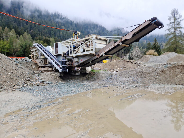 Das gewonnene Rohmaterial aus der nahegelegenen Kiesgrube besteht aus einem natürlichen Gemisch aus Kies, Sand und Feinanteilen. Nach dem Abbau wird das Material gewaschen und mittels Siebmaschinen in die normierten Korngrössen fraktioniert.Grössere Steine werden im Brecher mechanisch zerkleinert und anschliessend ebenfalls auf die geforderten Korngrössen sortiert. So entsteht eine breite Palette an qualitätsgeprüften Gesteinskörnungen für den Einsatz im Hoch- und Tiefbau.
