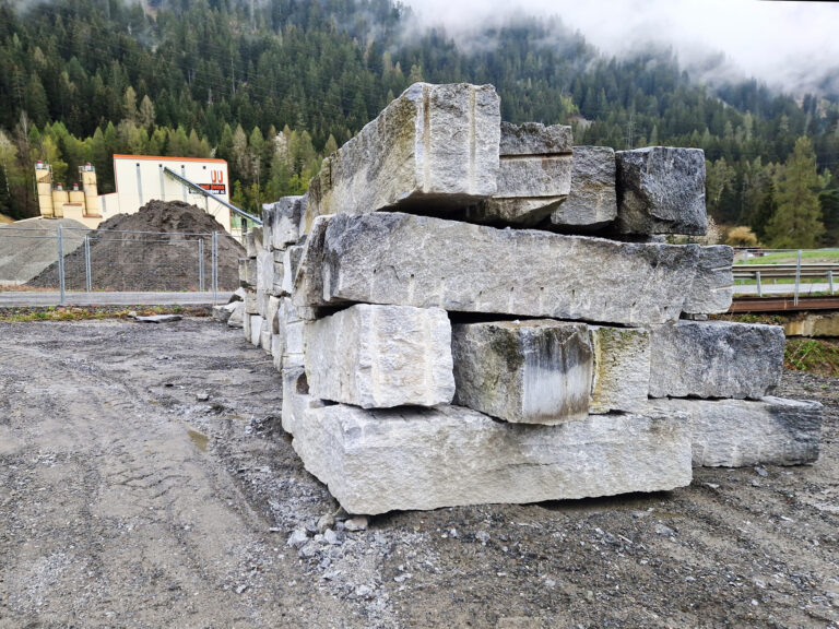 Zusätzlich werden Vorbausteine gewonnen. Diese eignen sich insbesondere für den Einsatz im Stützmauerbau, in der Böschungssicherung sowie für konstruktive und landschaftsbauliche Anwendungen, bei denen grosse, schwere Steinformate benötigt werden.
